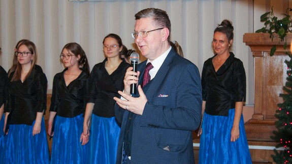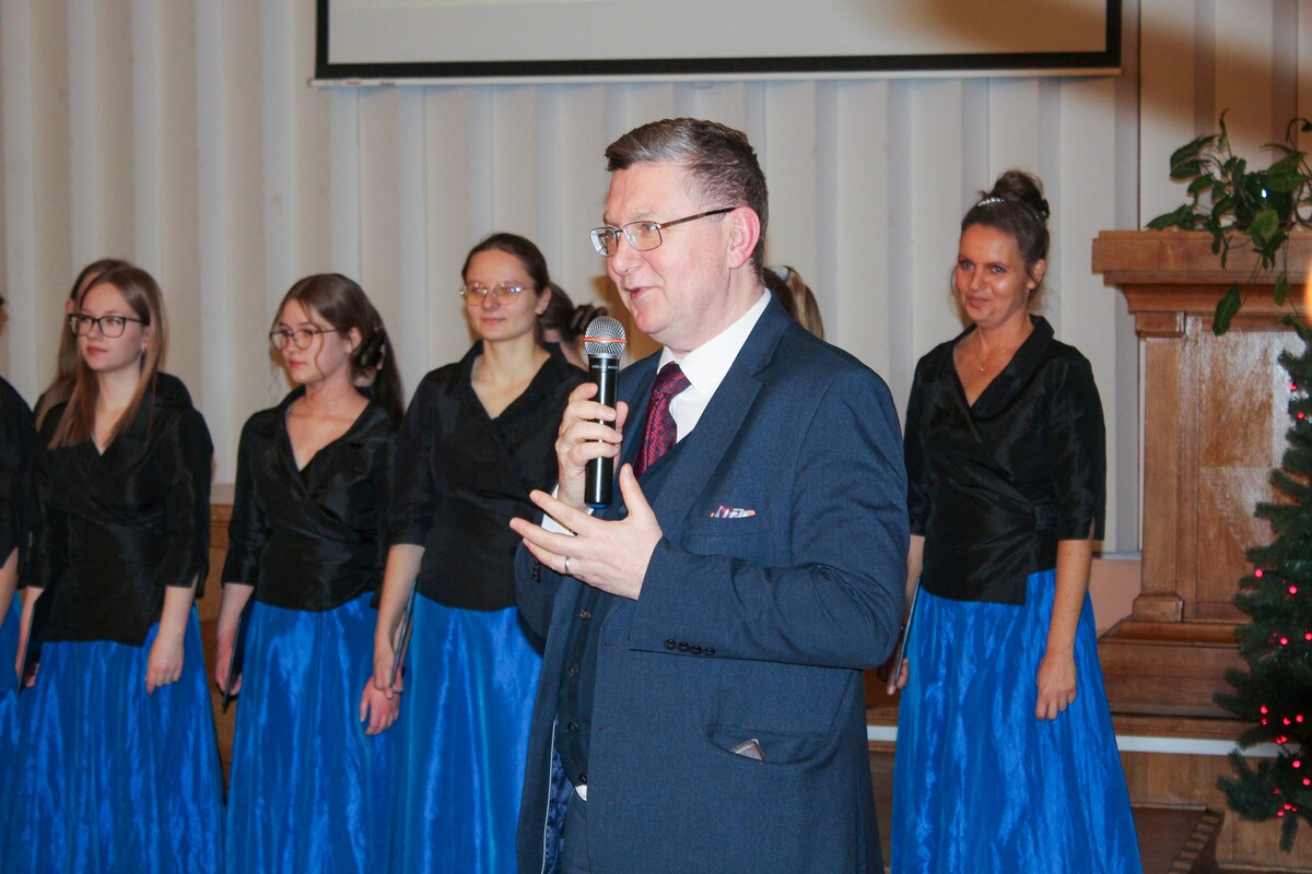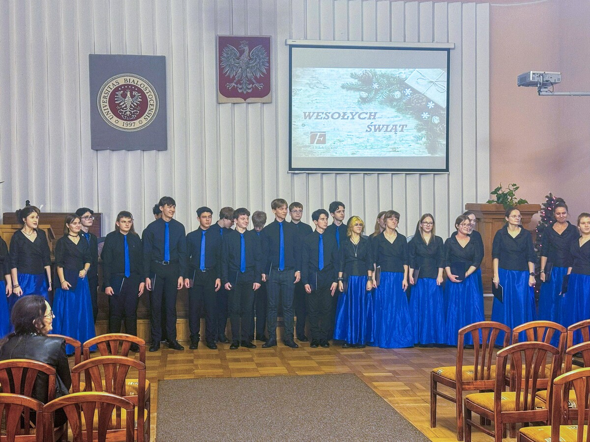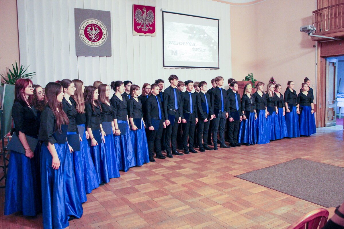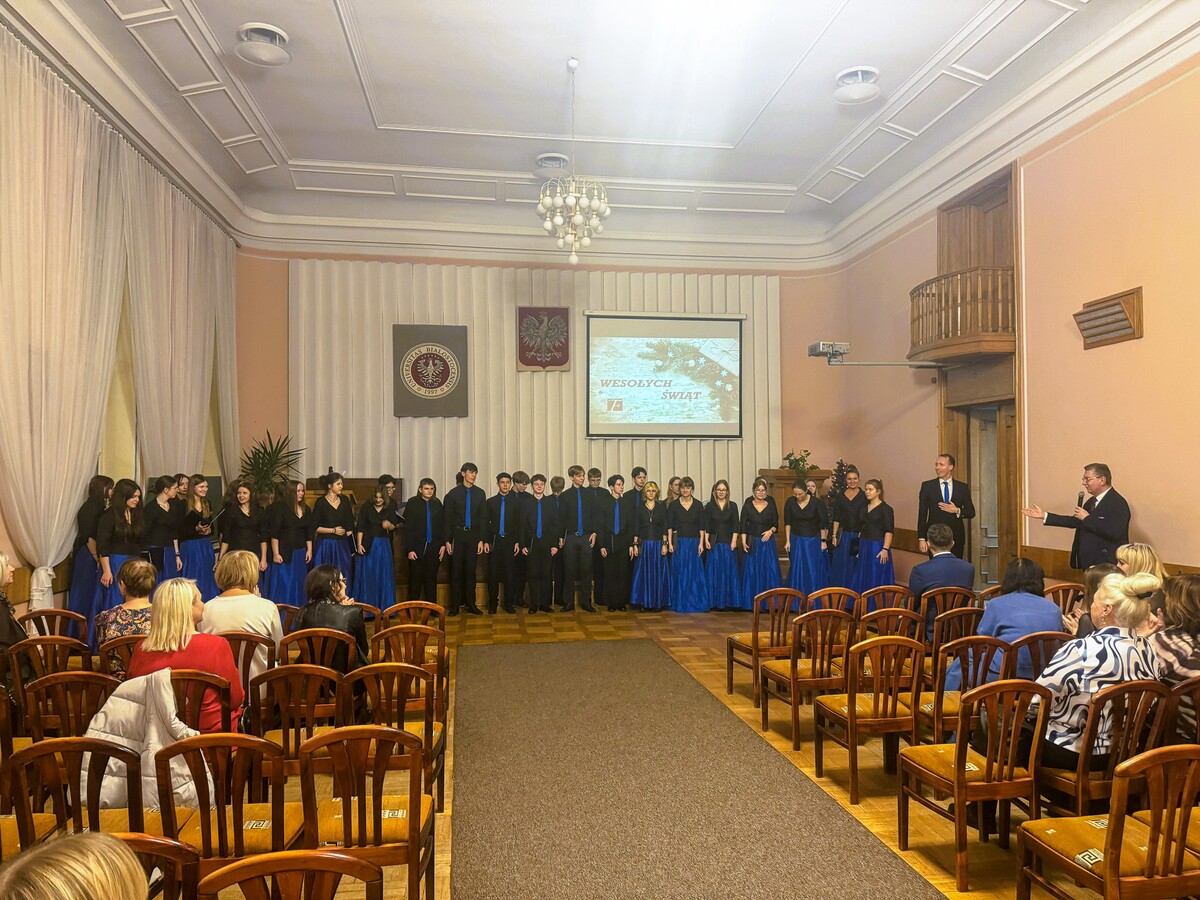 Artystyczną oprawę wydarzenia zapewnił Chór Miasta Białystok kierowany przez Pana Karola Szmukstę. Zespół zaprezentował wyjątkowy repertuar, wykonując pięć kolęd w różnych aranżacjach i językach, co doskonale wpisało się w wielokulturowy charakter naszego regionu. Usłyszeliśmy m.in. wykonania w języku łacińskim, tradycyjne kolędy prawosławne, żywiołową pastorałkę góralską oraz klasyczne polskie pieśni, w tym wspólnie odśpiewane „Bóg się rodzi” i „Wśród nocnej ciszy”.