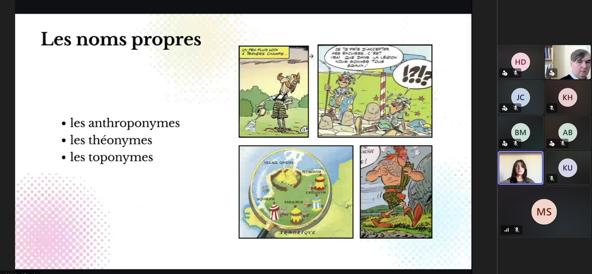 * Victoria Kozakiewicz, studentka III roku Filologii, moduł: Język francuski (od podstaw) z angielskim – profil tłumaczeniowy; tytuł referatu: L’analyse de la traduction des noms propres du français vers le polonais dans la série de bandes dessinées Astérix (opieka merytoryczna: dr Urszula Kochanowska)